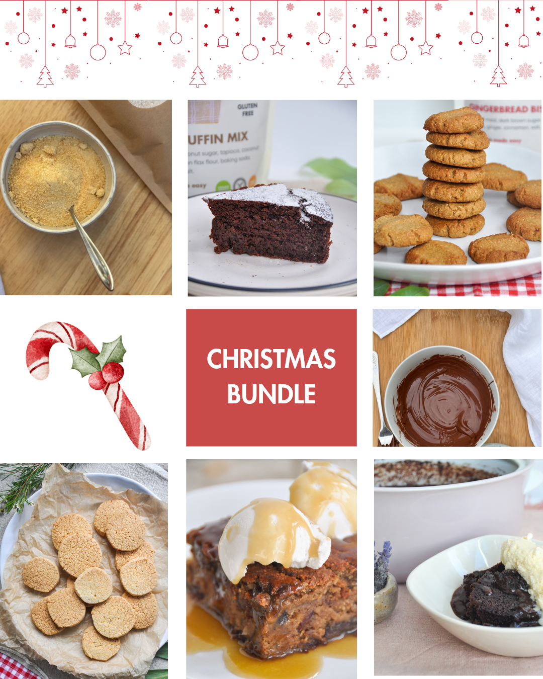 With this Christmas bundle you are going to make everyone happy with amazing desserts this festive season! Make the best gingerbread and shortbread in a flash. Use your Choc Muffin mix to make Mississippi Mud Cake or Choc Fudge Self Saucing pudding, using your organic 70% choc chunks. Create an amazing Sticky Date Pudding with the Banana Bread mix, using your organic golden coconut sugar to make caramel sauce.
